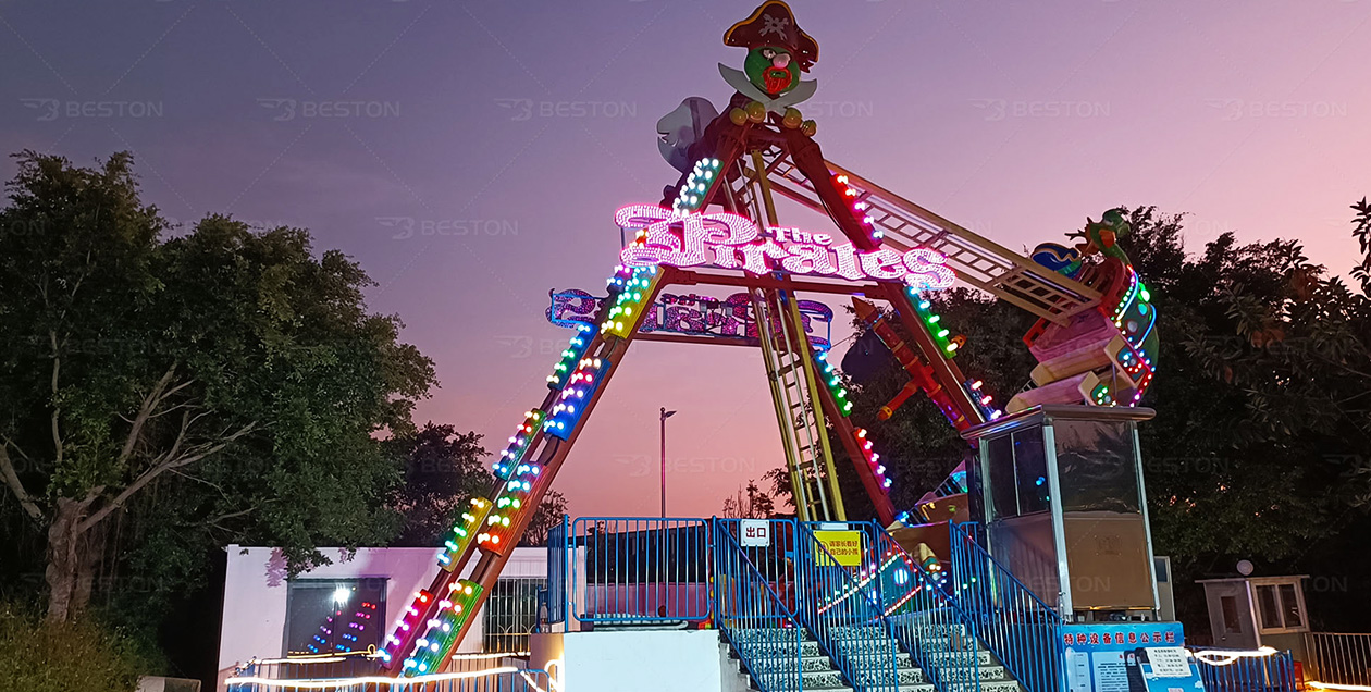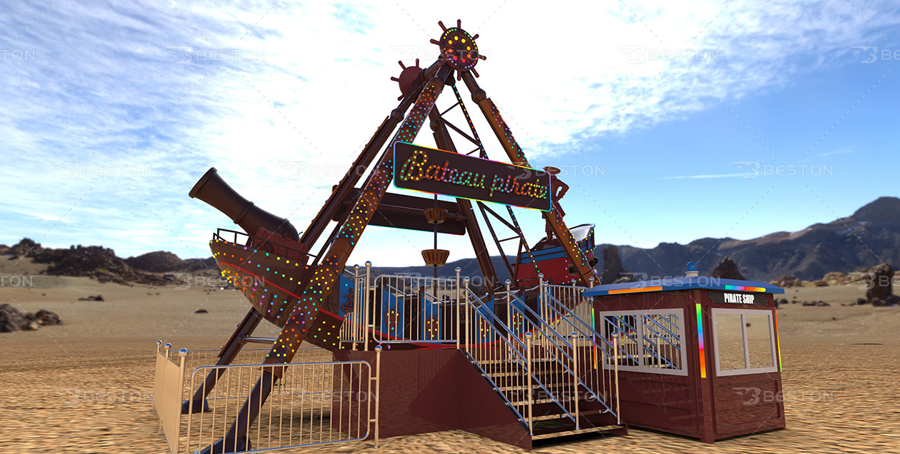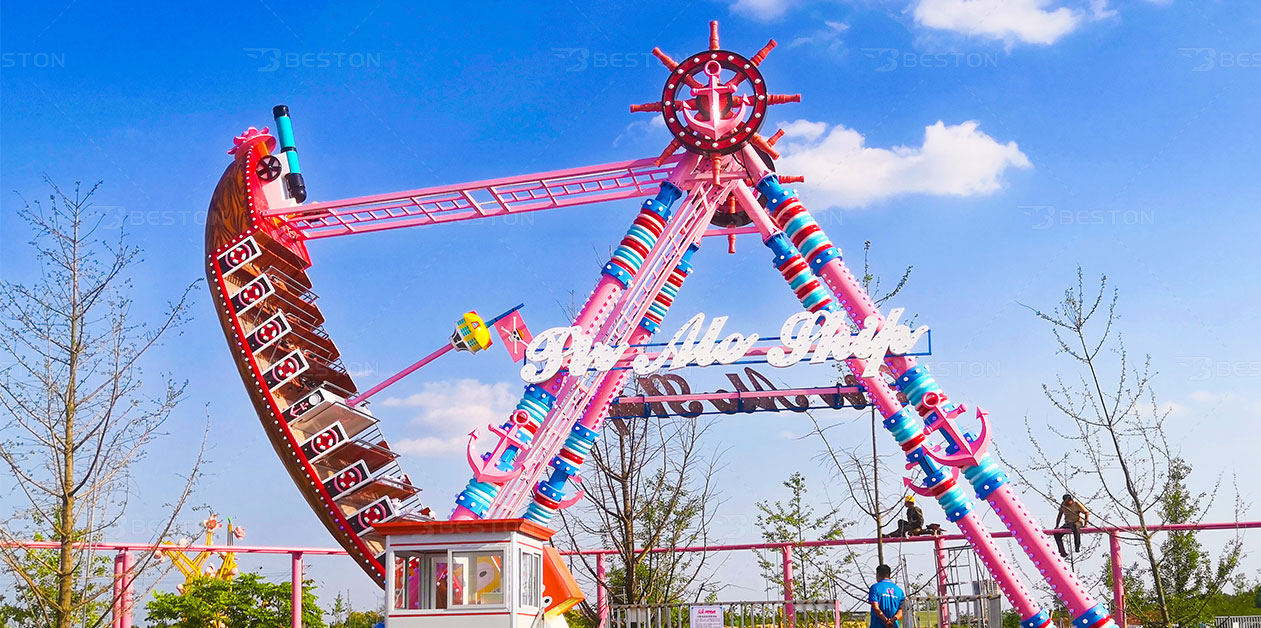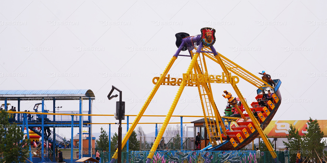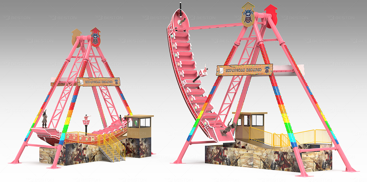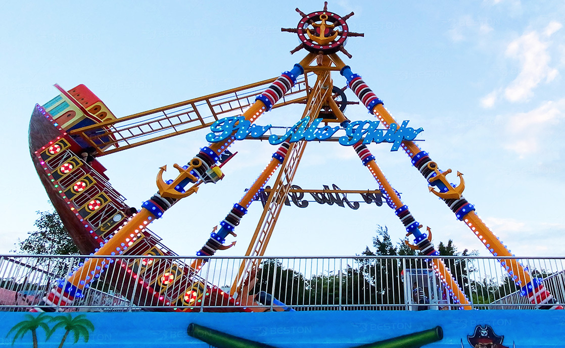 海盜船的工作原理是通過一個高懸掛的鏈條與支架相連,然后被擺動到空中。這種擺動運動模擬了海盜船在波濤洶涌的海面上航行的感覺,給乘客帶來身臨其境的體驗。