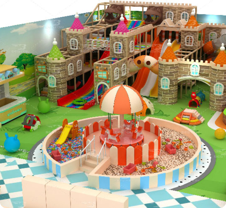 室內游樂場設施,也叫淘氣堡設備,廣泛應用于知識內兒童樂園,是一座新型的、綜合性極強的室內兒童樂園,室內游樂廠設備種類多樣,主要項目有蹦床,滑梯、海洋球池,等,同時也可以配備機械類設備,如轉馬,兒童爬山車,兒童挖掘機等,室內游樂場不受場地限制,無論是戶內外,還是不規則的場地,均能安裝,管理簡單,無動力設備,維修方便。百斯特游樂可以根據客戶的場地提供定制化方案。根據客戶場地以及需求,通過客戶提供的資料以及本地化市場調研,為客戶提供定制方案,包括場地整體布局,熱門室內游樂場設施的合理搭配,設備生產,安裝,以及室內樂園運營服務,以下是部分方案及配套設備: