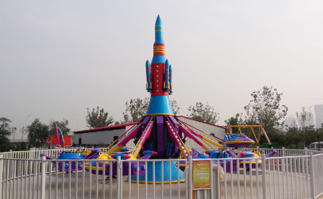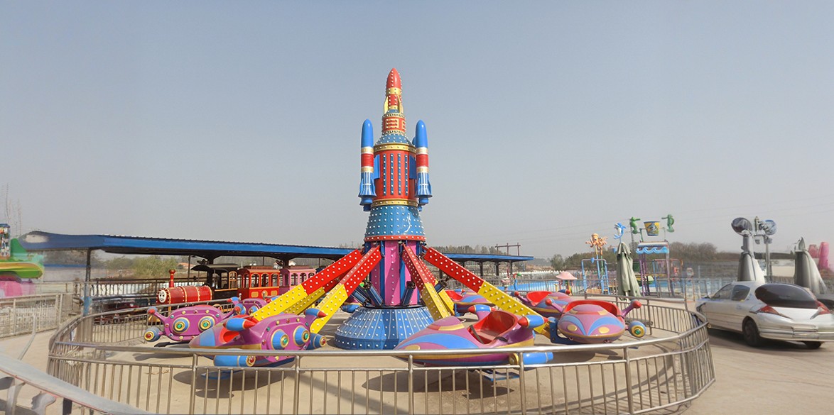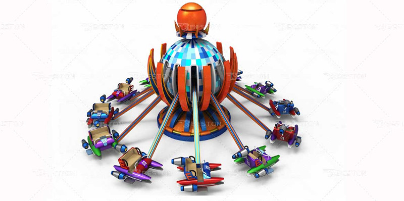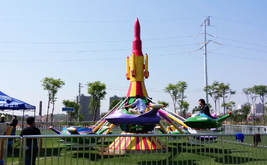 我們公司生產的自控飛機設備具有新穎的外觀、華麗迷人的彩燈裝飾,受到游客的歡迎。