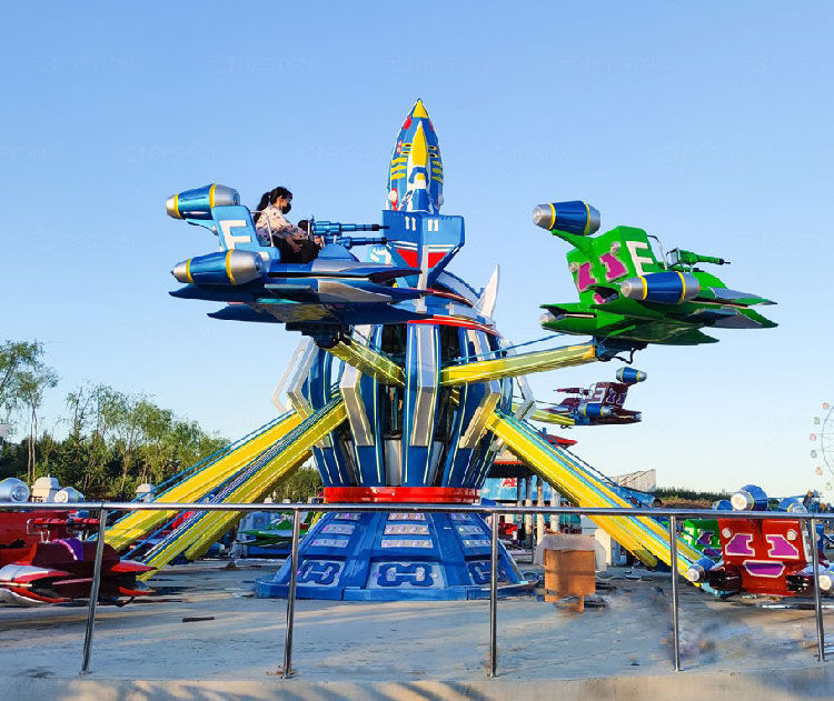 自控飛機游藝機造型美觀,是一種科學性和趣味性較強的游樂設備,深受男女老少的歡迎。經典的自控飛機設有8個回轉大臂支承的供游客乘坐的“飛機”樣式的座艙8個,每個座艙圍著造型美觀的中心柱盤旋飛起,運行中乘客可按自己的意愿,可隨時觸動按鈕 ,使座艙上升、下降及停止,槍聲、炮聲、飛機聲,聲聲入耳。因此乘客可以真正享受到空中作戰的無窮樂趣,令您留連忘返。百斯特游樂設備目前生產的自控飛機種類有幾十種,想要訂購自控飛機,歡迎聯系我們!